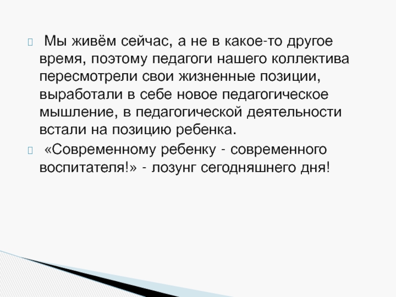 Слайд 4 Мы живём сейчас, а не в какое-то другое время, поэтому педагоги