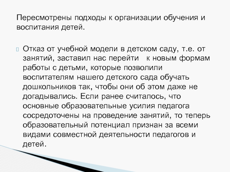 Слайд 5Пересмотрены подходы к организации обучения и воспитания детей.