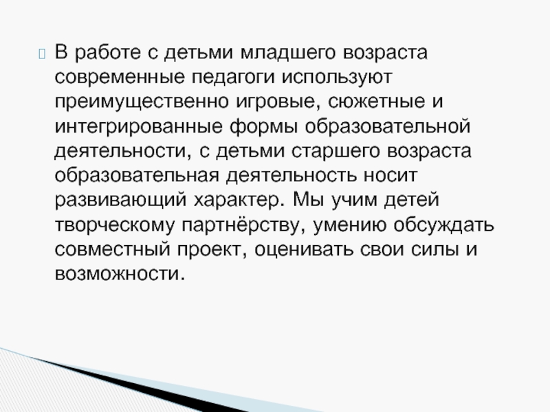 Слайд 15В работе с детьми младшего возраста современные педагоги используют преимущественно игровые,