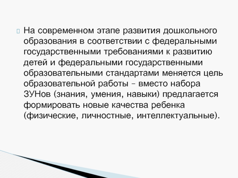 Слайд 3На современном этапе развития дошкольного образования в соответствии с федеральными государственными