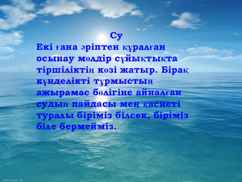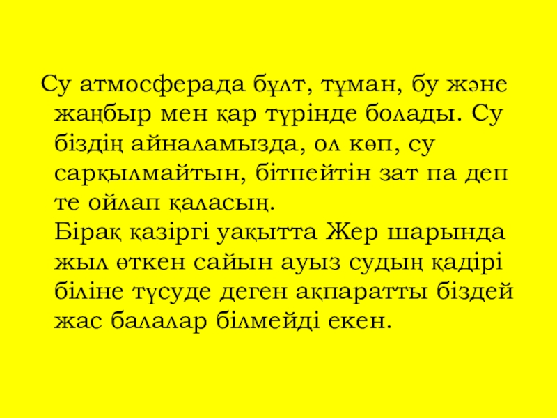 болады. Су біздің айналамызда, ол көп, су сарқылмайтын, бітпейтін зат па деп те ойлап қаласың.