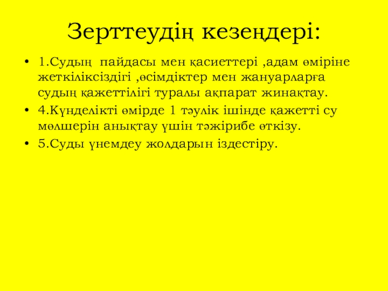 4.Күнделікті өмірде 1 тәулік ішінде қажетті су мөлшерін анықтау үшін тәжірибе өткізу.