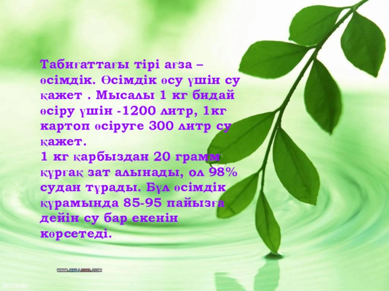 Табиғаттағы тірі ағза – өсімдік. Өсімдік өсу үшін су қажет .