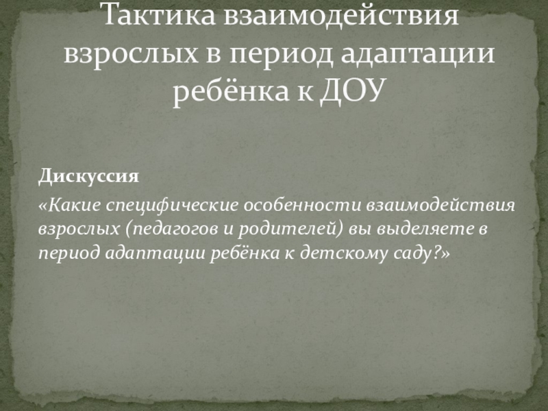 Тактика взаимодействия взрослых в период адаптации ребёнка к ДОУ