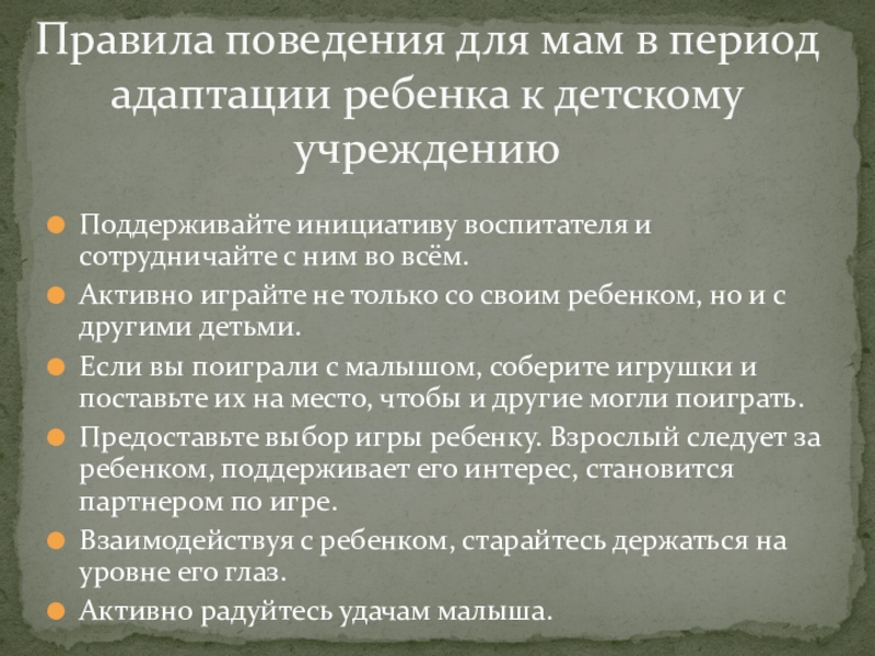 Правила поведения для мам в период адаптации ребенка к детскому учреждению