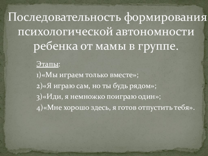 Последовательность формирования психологической автономности ребенка от мамы в группе.