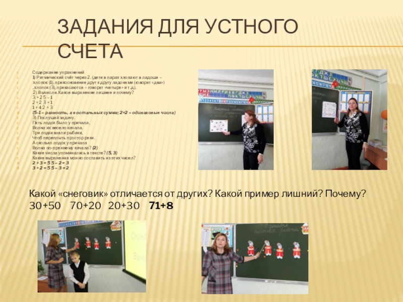 Какой «снеговик» отличается от других? Какой пример лишний? Почему?