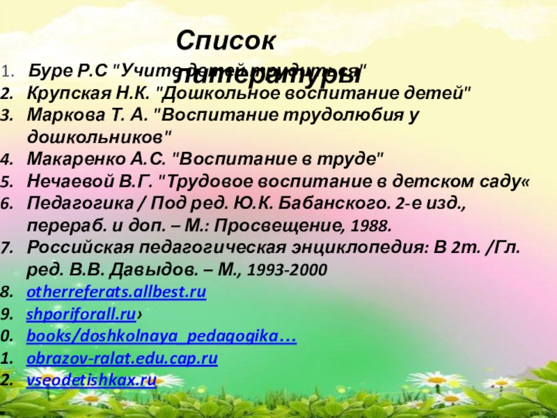 Нечаевой В.Г. "Трудовое воспитание в детском саду«