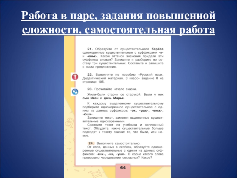 Слайд 45Работа в паре, задания повышенной сложности, самостоятельная работа