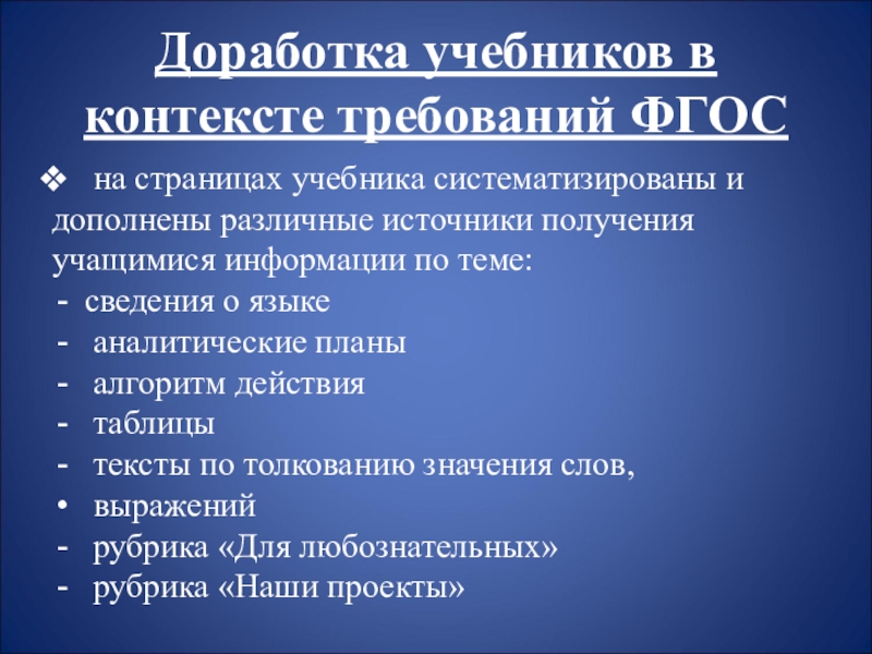 Слайд 42Доработка учебников в контексте требований ФГОС