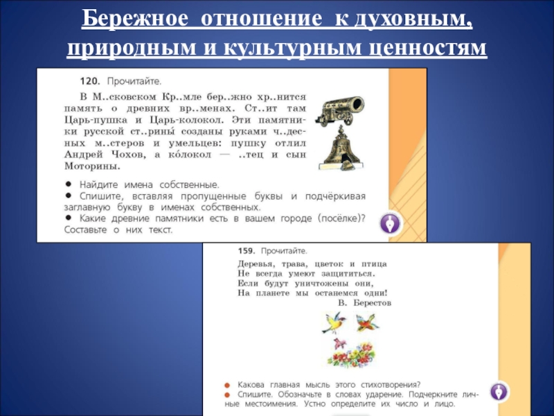 Слайд 26Бережное отношение к духовным, природным и культурным ценностям