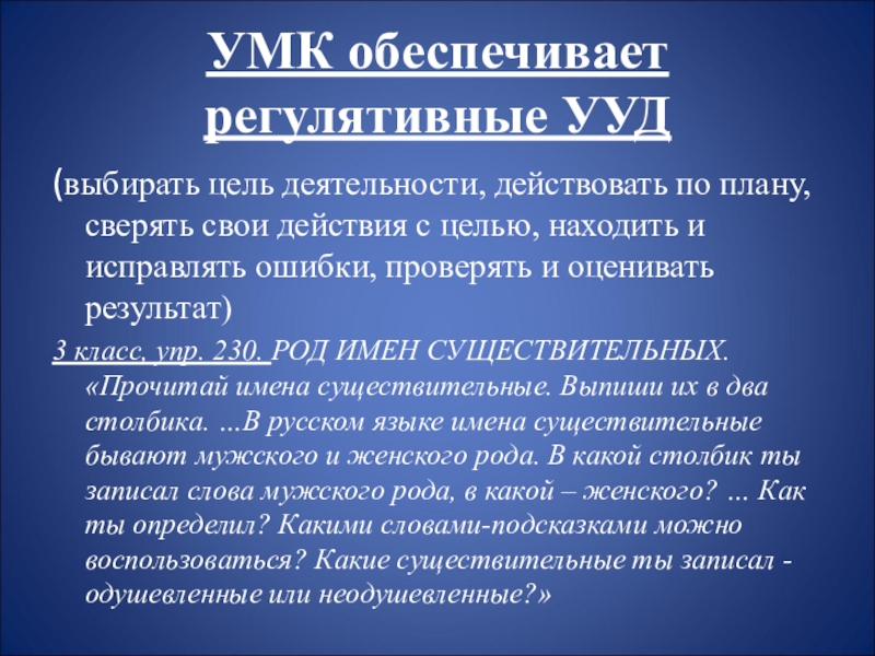 3 класс, упр. 230. РОД ИМЕН СУЩЕСТВИТЕЛЬНЫХ. «Прочитай имена существительные. Выпиши их в два столбика. …В русском языке имена существительные бывают мужского и женского рода. В какой столбик ты записал слова мужского рода, в какой – женского? … Как ты определил? Какими словами-подсказками можно воспользоваться? Какие существительные ты записал - одушевленные или неодушевленные?»