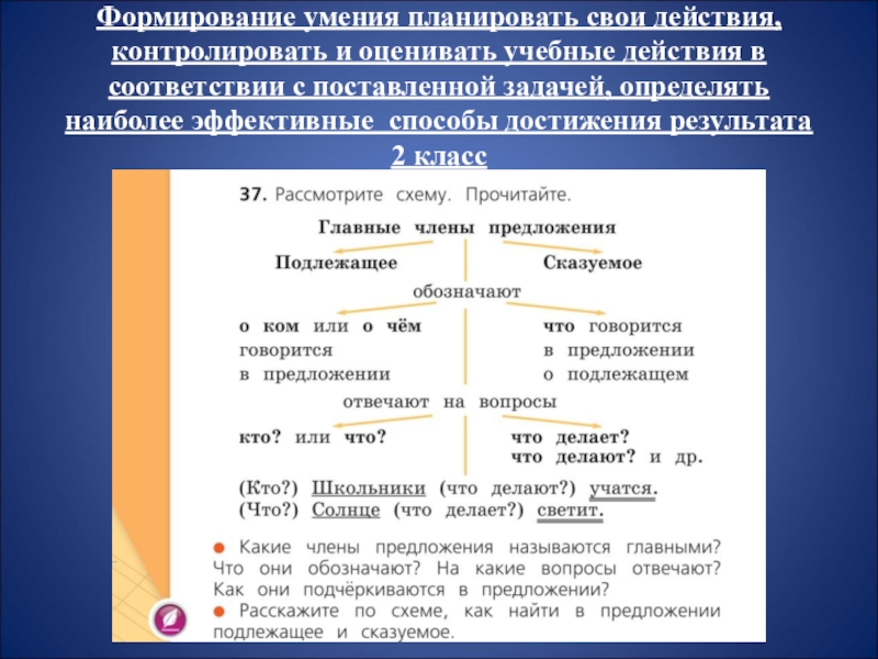 Формирование умения планировать свои действия, контролировать и оценивать учебные действия в соответствии с поставленной задачей, определять наиболее эффективные способы достижения результата.
