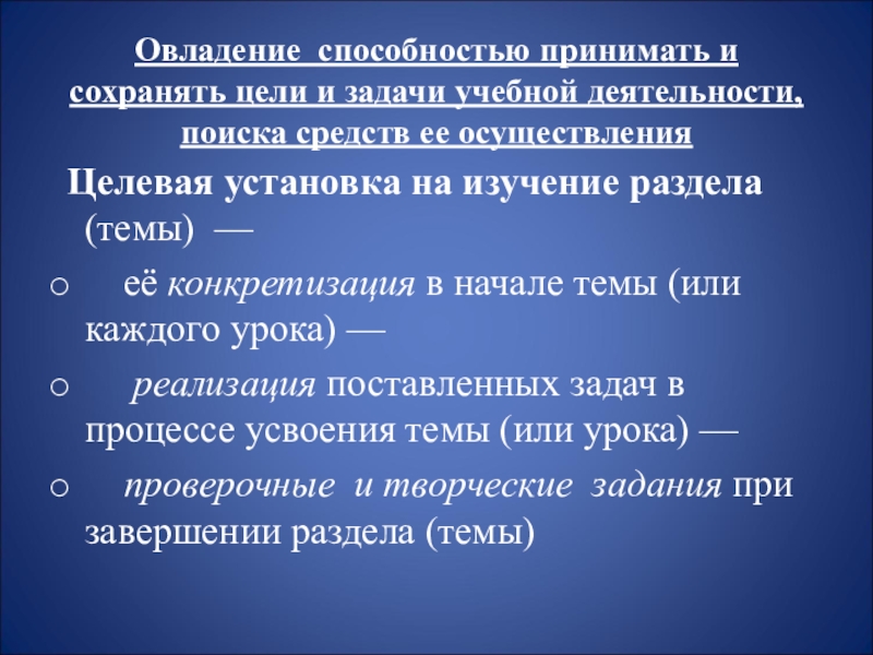 Овладение способностью принимать и сохранять цели и задачи учебной деятельности,