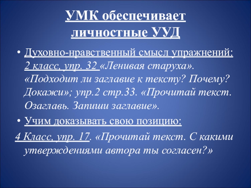 Духовно-нравственный смысл упражнений: 2 класс, упр. 32 «Ленивая