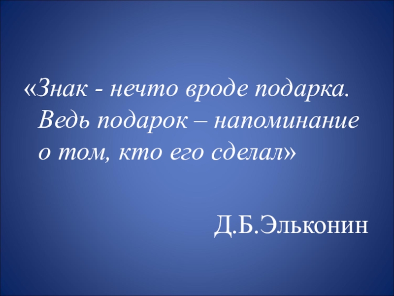 «Знак - нечто вроде подарка. Ведь подарок – напоминание о том,