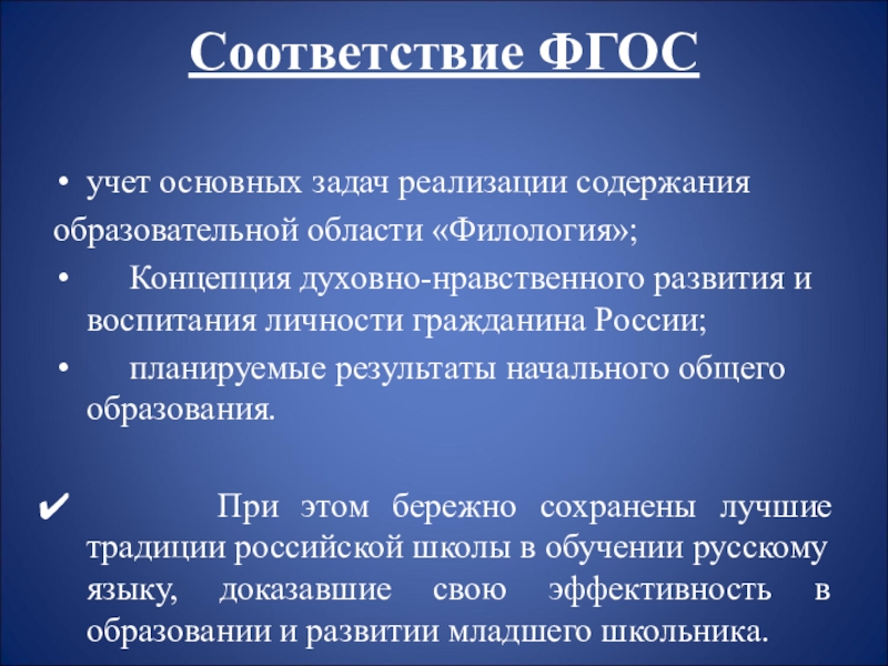 При этом бережно сохранены лучшие традиции российской школы в обучении русскому языку, доказавшие свою эффективность в образовании и развитии младшего школьника.