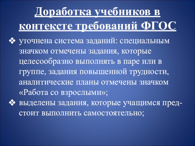 Слайд 44Доработка учебников в контексте требований ФГОС