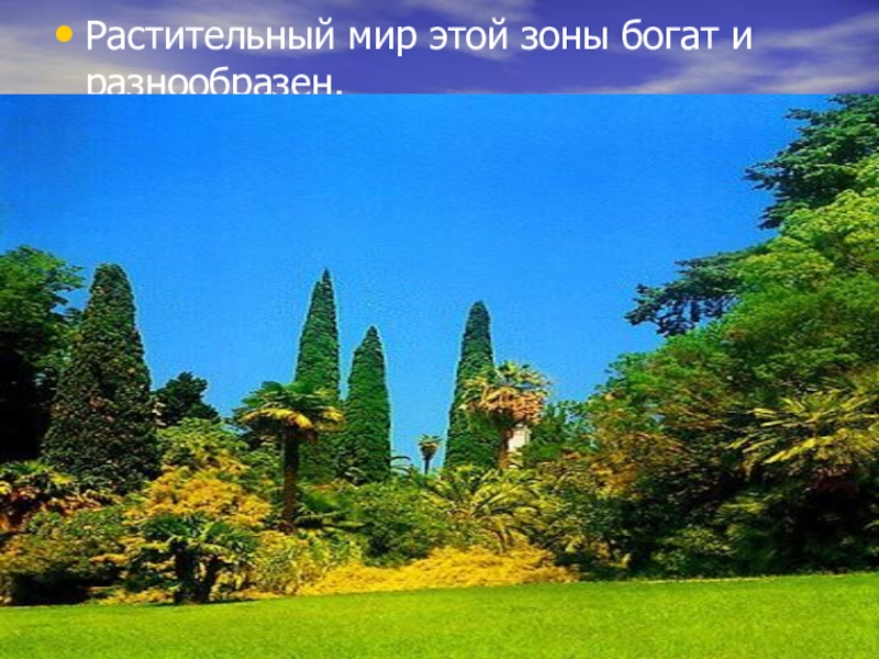 Субтропическая зонаСубтропическая зона расположена на Черноморском побережье Кавказа