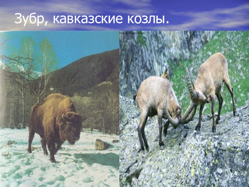 Слайд 12Зубр, кавказские козлы.