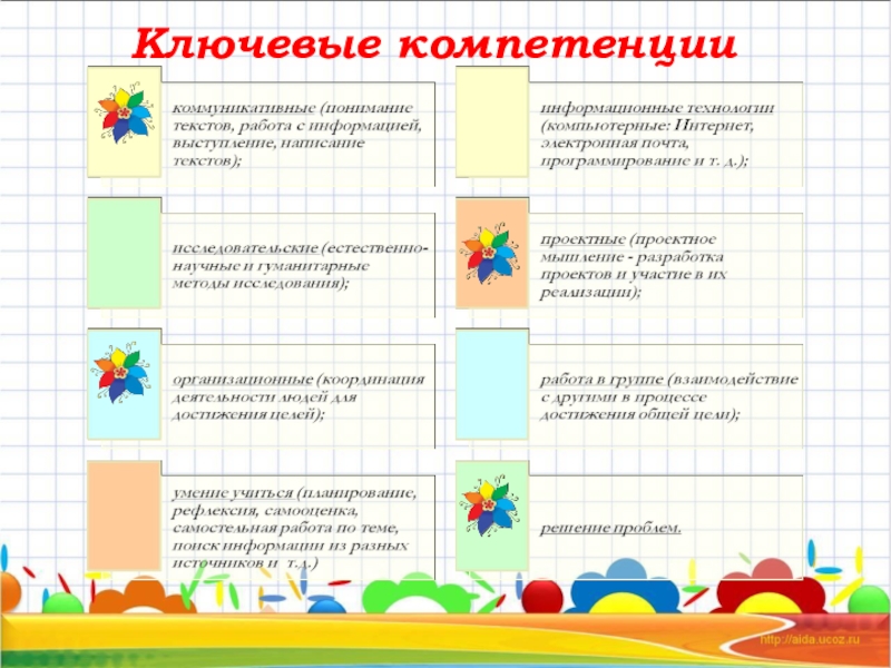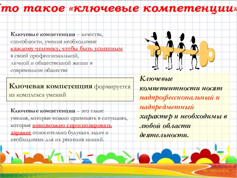 Ключевые компетентности носят надпрофессиональный и надпредметный характер и необходимы в любой области деятельности.