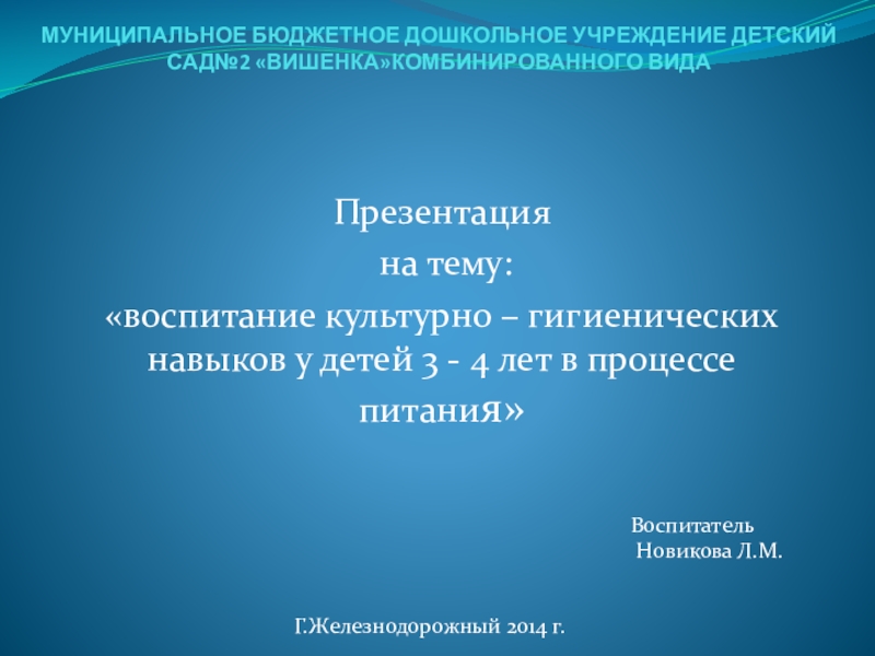 «воспитание культурно – гигиенических навыков у детей 3 - 4 лет в процессе питания»