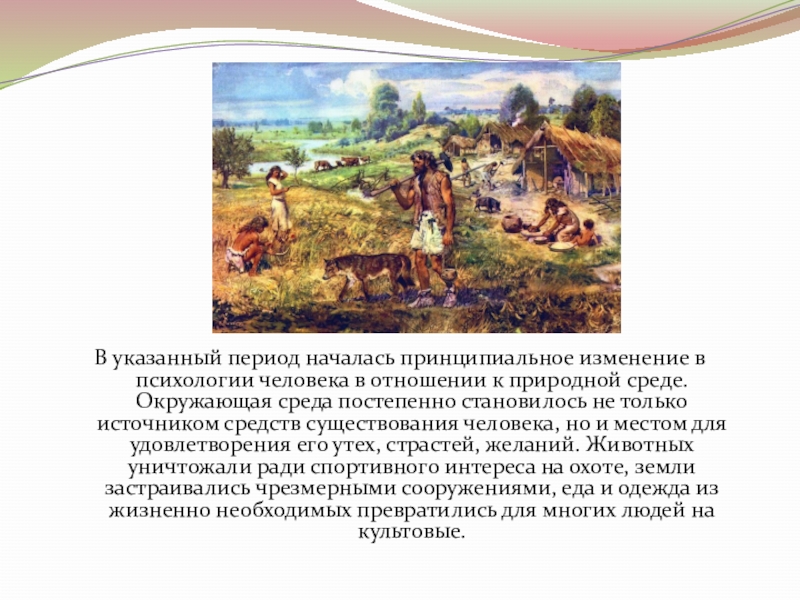 В указанный период началась принципиальное изменение в психологии человека в отношении к природной среде. Окружающая среда