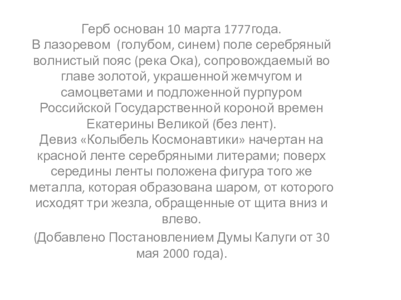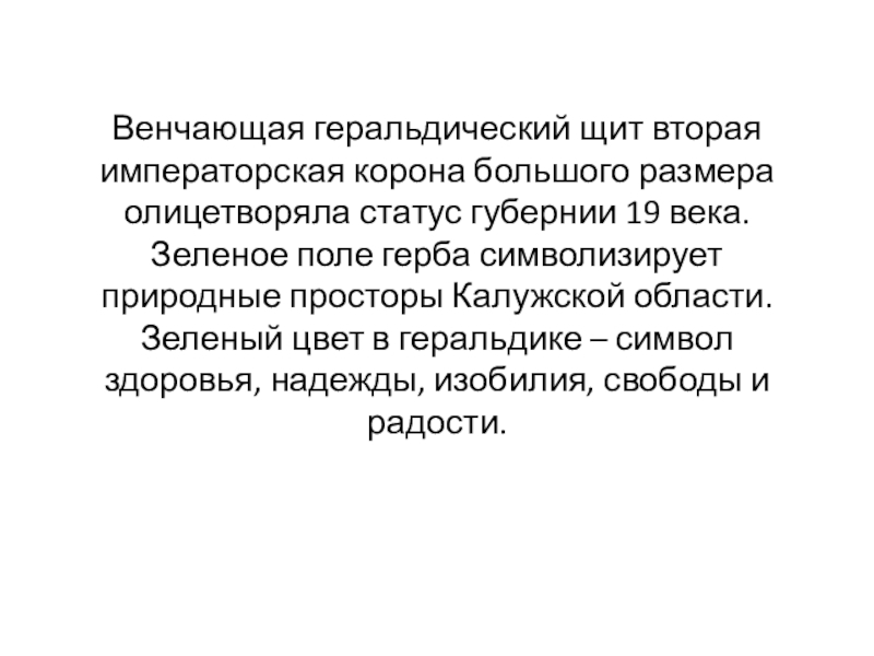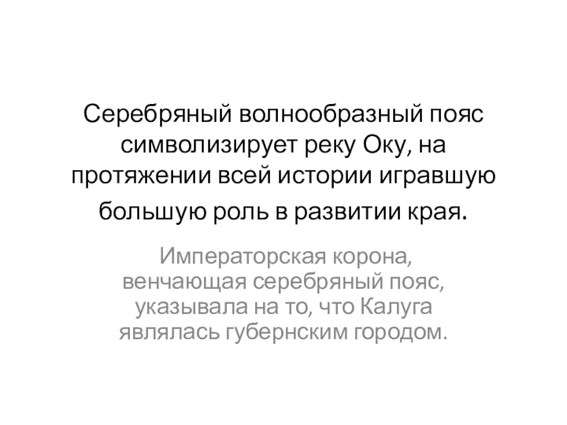 Императорская корона, венчающая серебряный пояс, указывала на то, что Калуга являлась губернским городом.
