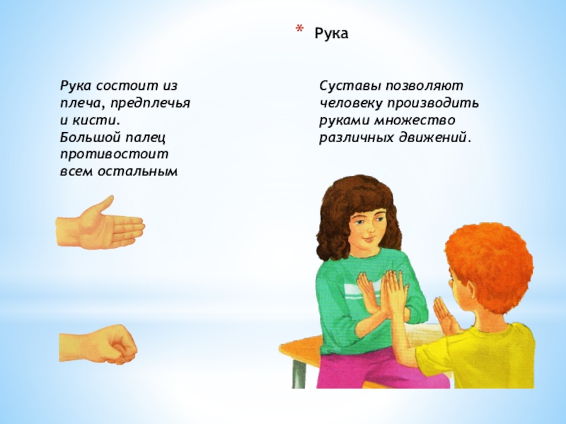 Суставы позволяют человеку производить руками множество различных движений.