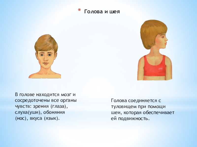 Голова соединяется с туловищем при помощи шеи, которая обеспечивает ей подвижность.