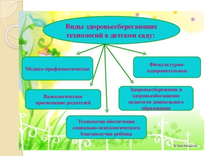 Технологии здоровьесбережения и здоровьеобогащения педагогов дошкольного образования – технологии, направленные на развитие культуры здоровья педагогов детского сада, в