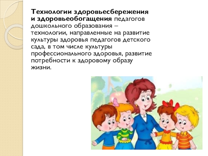 Слайд 8Технологии здоровьесбережения и здоровьеобогащения педагогов дошкольного образования – технологии, направленные на развитие