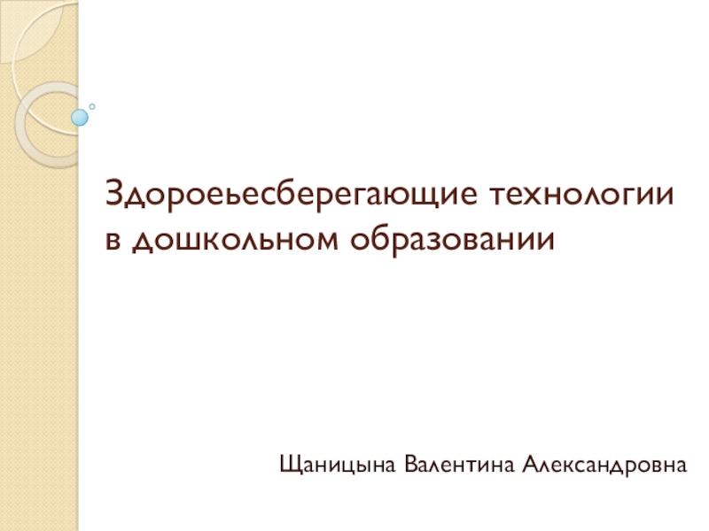 Здороеьесберегающие технологии в дошкольном образованииЩаницына Валентина Александровна