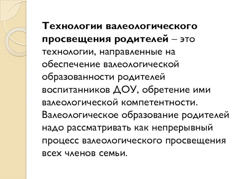 Слайд 6Технологии валеологического просвещения родителей – это технологии, направленные на обеспечение валеологической образованности