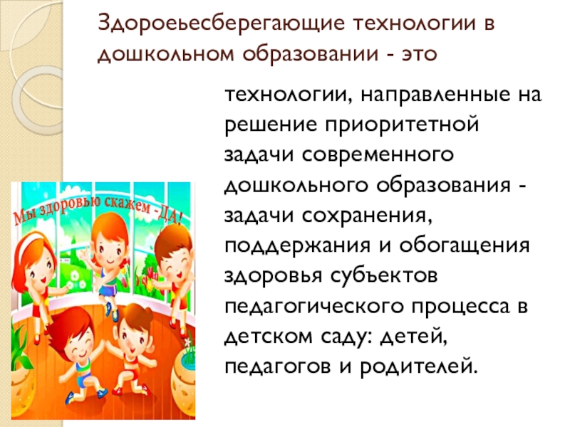 Слайд 2Здороеьесберегающие технологии в дошкольном образовании - это