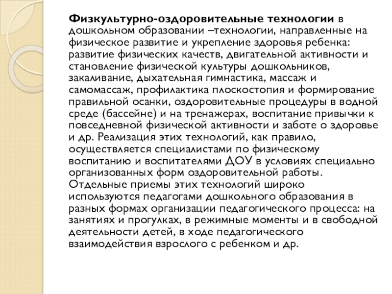 Слайд 9Физкультурно-оздоровительные технологии в дошкольном образовании –технологии, направленные на физическое развитие и