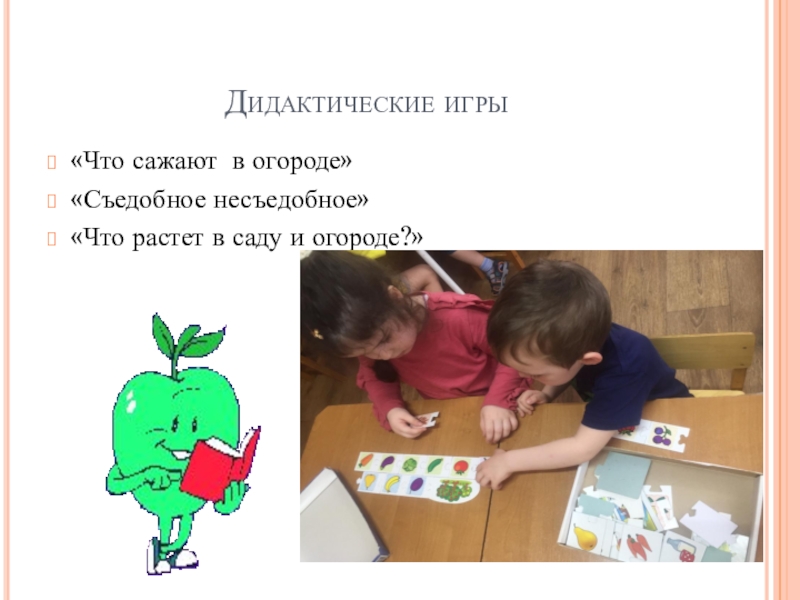 Дидактические игры«Что сажают в огороде»«Съедобное несъедобное»«Что растет в саду и огороде?»