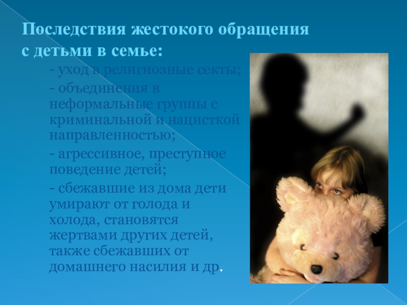 Слайд 6Последствия жестокого обращения