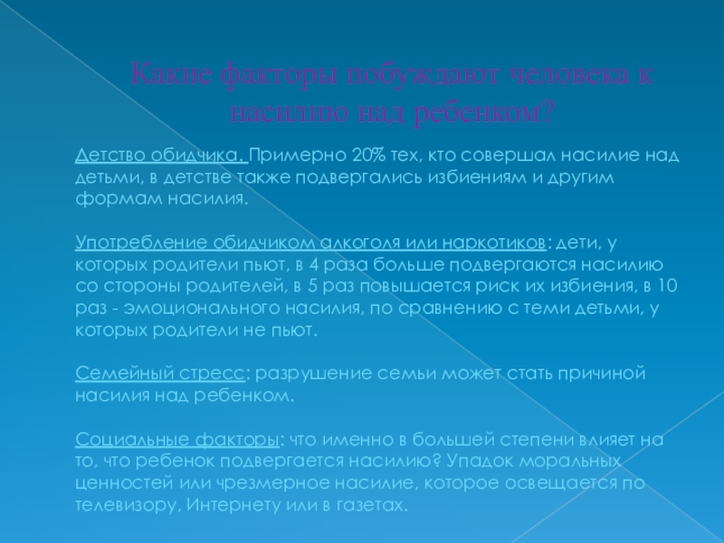 Слайд 5Какие факторы побуждают человека к насилию над ребенком?