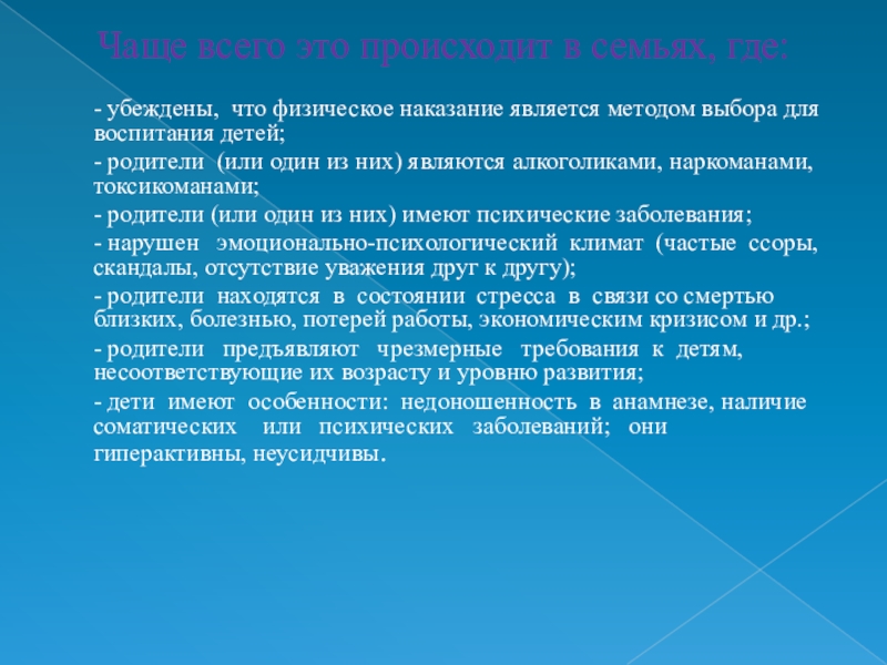 Слайд 18Чаще всего это происходит в семьях, где: