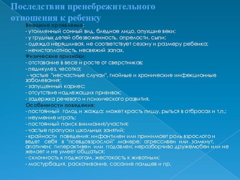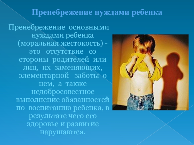Слайд 9Пренебрежение нуждами ребенка