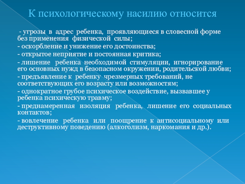 Слайд 11К психологическому насилию относится