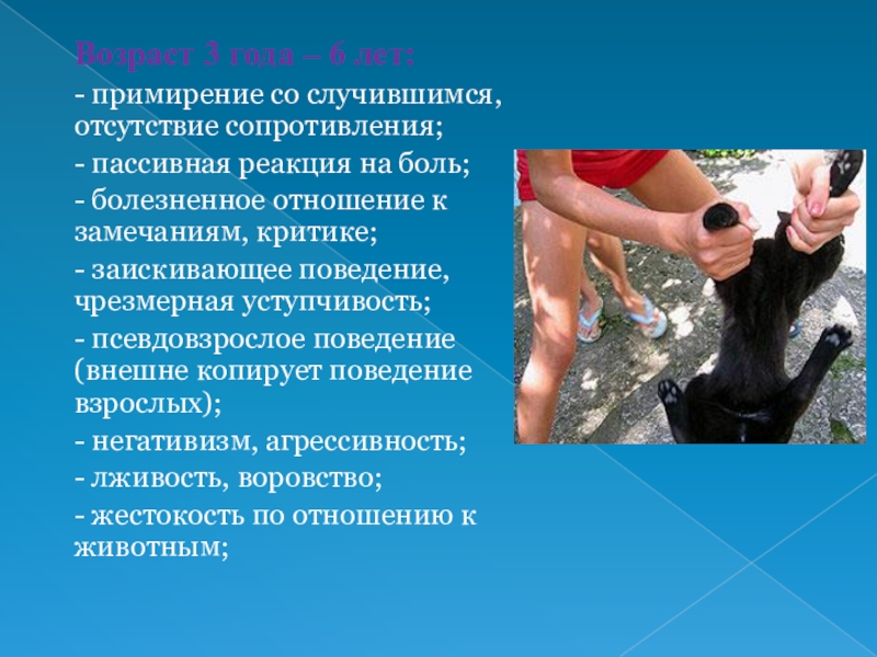 - склонность к поджогам, жестокость к животным;