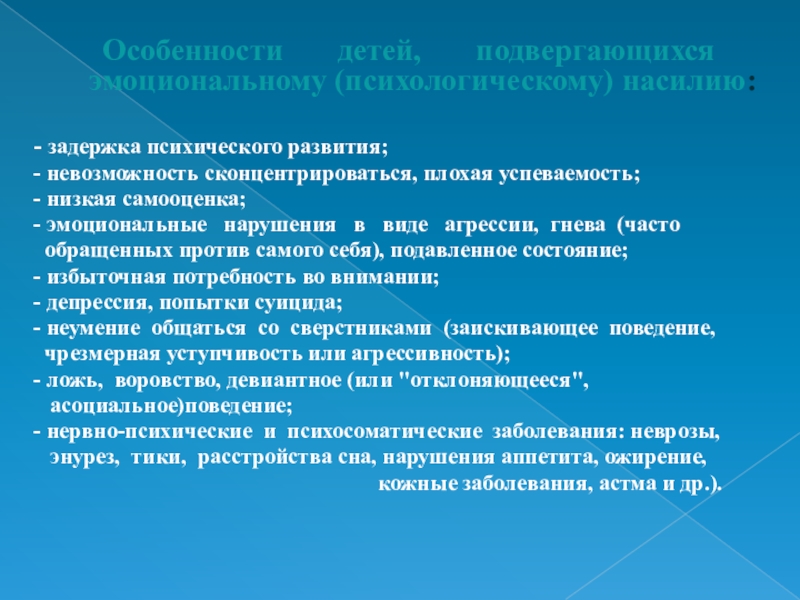 Слайд 14 Особенности детей, подвергающихся