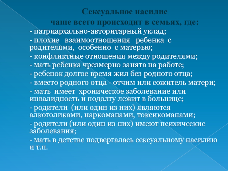 - мать в детстве подвергалась сексуальному насилию и т.п.