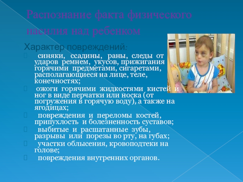 Слайд 21Распознание факта физического насилия над ребенком