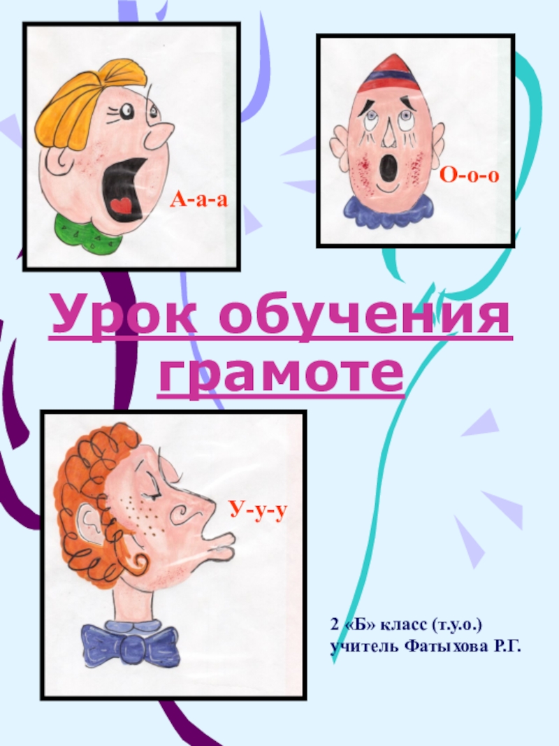 Урок обучения грамоте  О-о-оУ-у-уА-а-а2 «Б» класс (т.у.о.)учитель Фатыхова Р.Г.