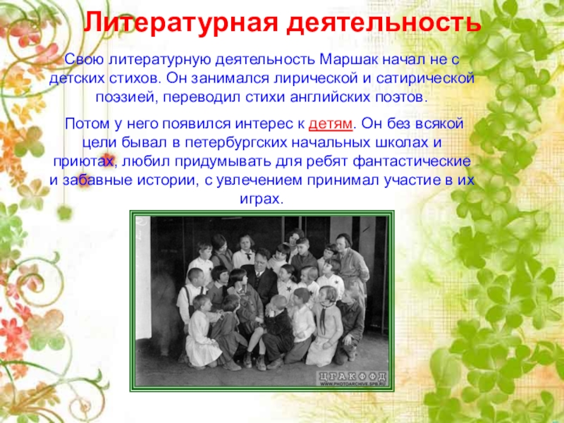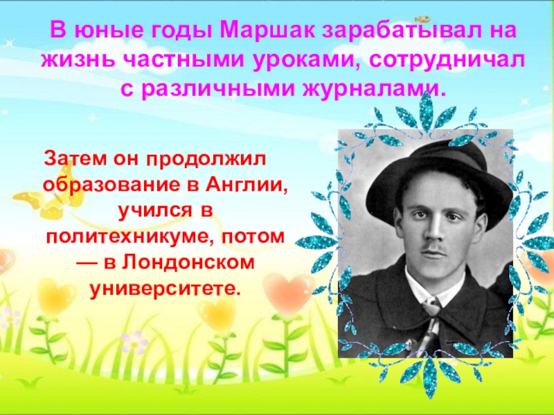 В юные годы Маршак зарабатывал на жизнь частными уроками, сотрудничал с различными журналами.