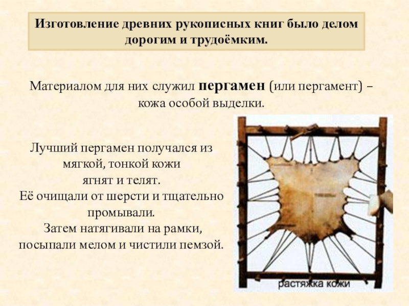 Затем натягивали на рамки, посыпали мелом и чистили пемзой.