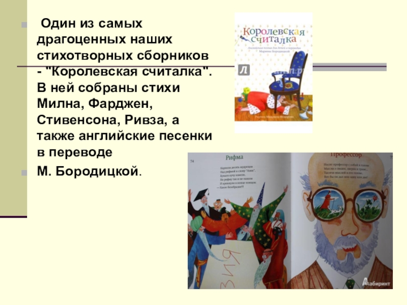 Слайд 9 Один из самых драгоценных наших стихотворных сборников - "Королевская считалка". В